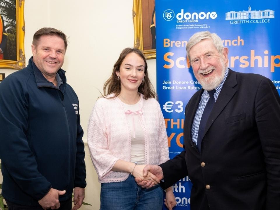 Griffith College congratulates Molly on receiving the Brendan Lynch Scholarship and thanks Donore Credit Union for their continued support.